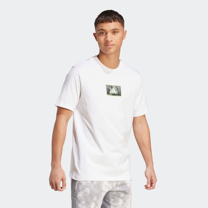 Dale un toque de camuflaje a tu estilo diario con esta playera estampada adidas. Está confeccionada en suave tejido de punto sencillo de algodón que te mantiene cómodo desde el momento en que te la pones. El logo en letra cursiva inspirado en el camuflaje en el pecho es toda una declaración de intenciones.