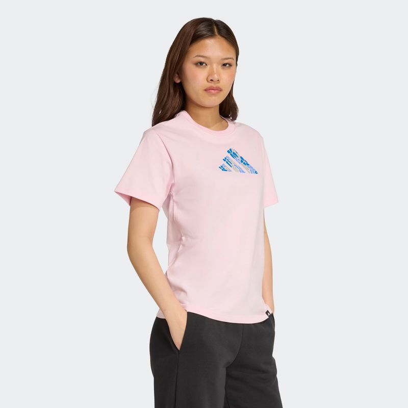 Esta playera adidas es una elección perfecta para cualquier ocasión informal. Hecha de suave algodón, combina bien con todo, desde shorts a sudaderas o jeans. Un logo de las 3 Franjas lleno de flores le da un toque bonito.